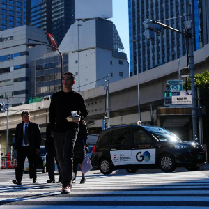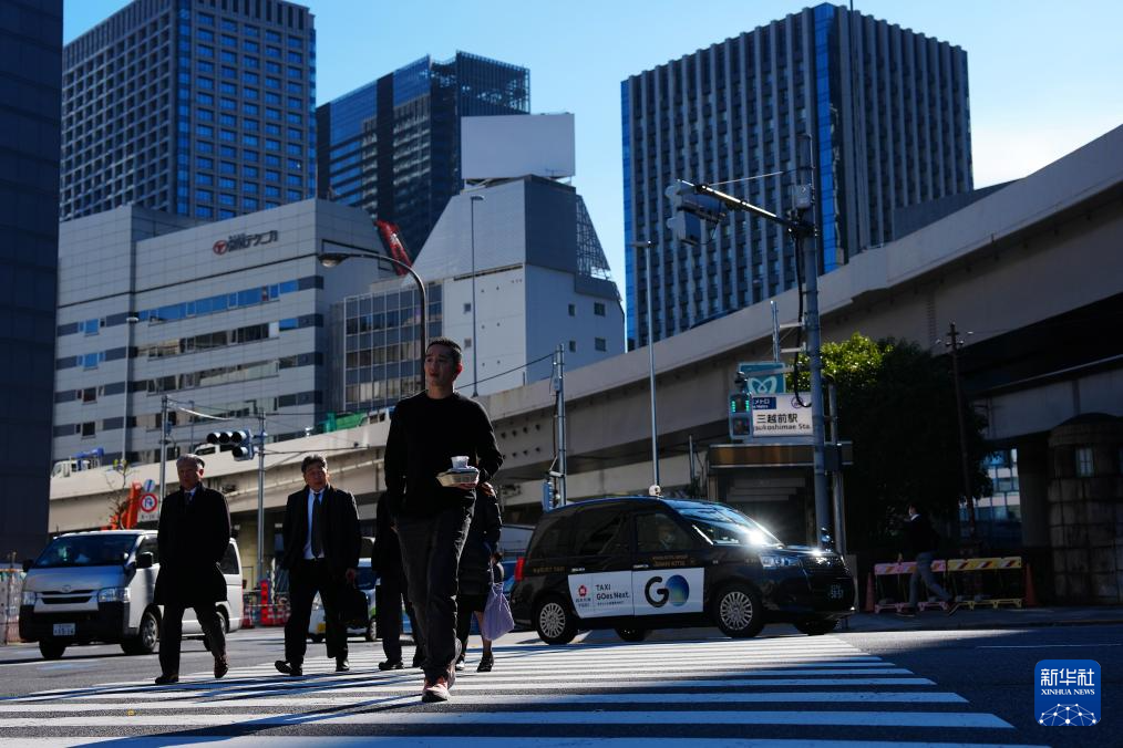12月18日,行人走过日本东京三越前站附近的人行横道。