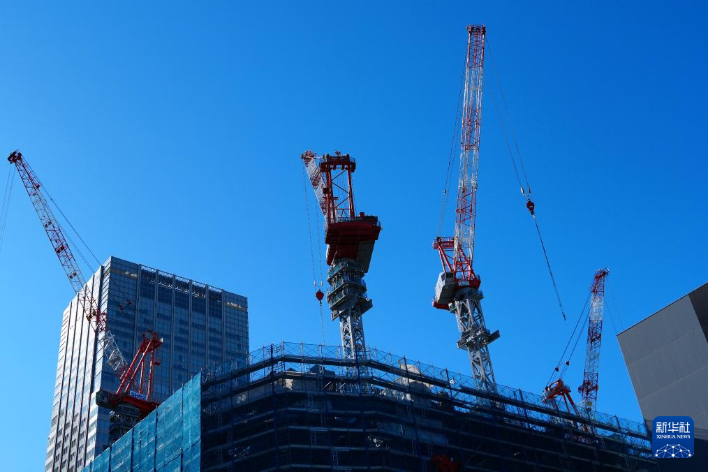 这是12月18日在日本东京三越前站附近拍摄的一处施工现场。