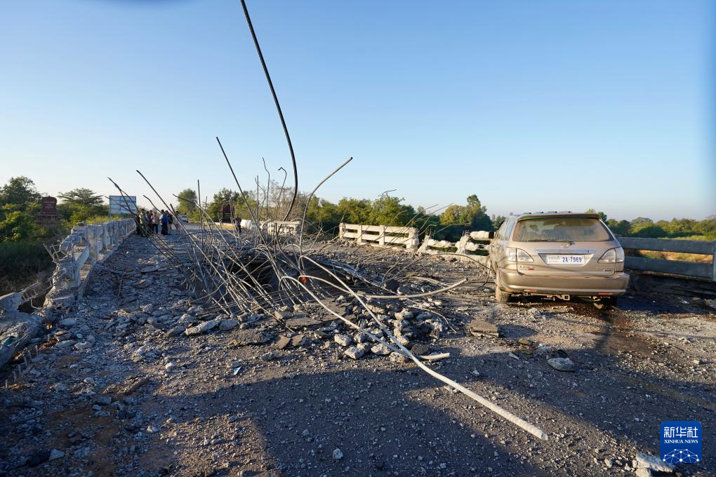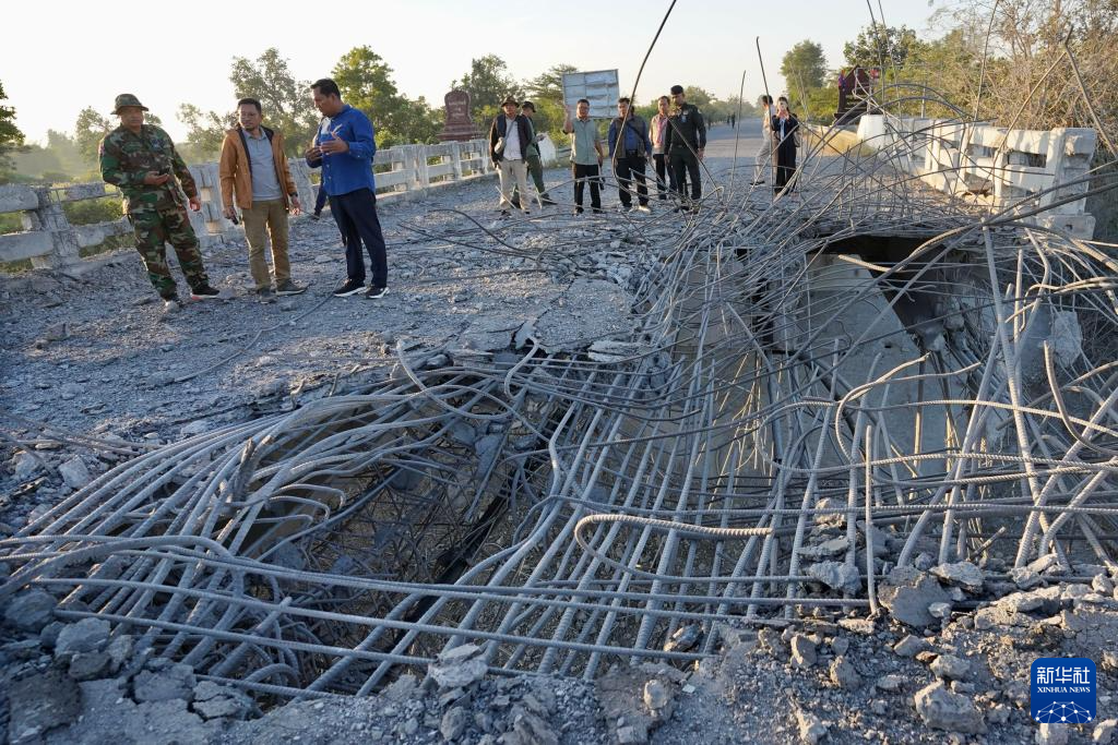 这是12月20日在柬埔寨奥多棉吉省与暹粒省交界处拍摄的被轰炸的桥梁。