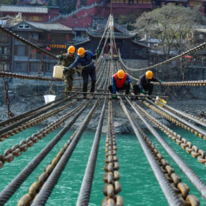 四川省甘孜藏族自治州泸定县于12月9日启动泸定桥检修维护工作,预计12月29日完成。本次检修维护聚焦泸定桥核心结构安全与历史风貌留存,针对桥梁关键部位开展重点作业,对承载桥梁主体的9根钢缆进行除垢清理并涂抹黄油防护保养,对出现锈蚀的铁链实施专业除锈处理,同步更换少量老化桥板。