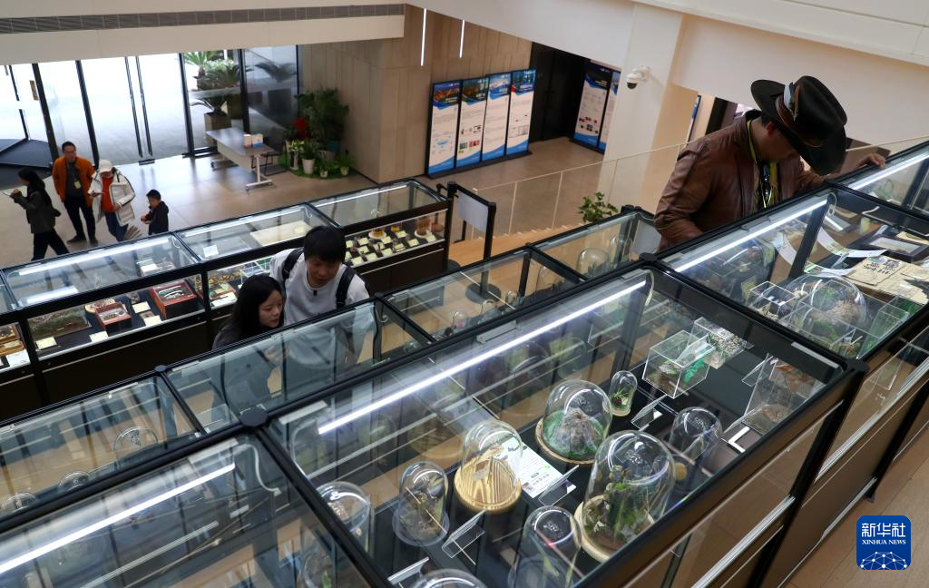 12月20日,参观者在近距离观察作品展上的昆虫标本。