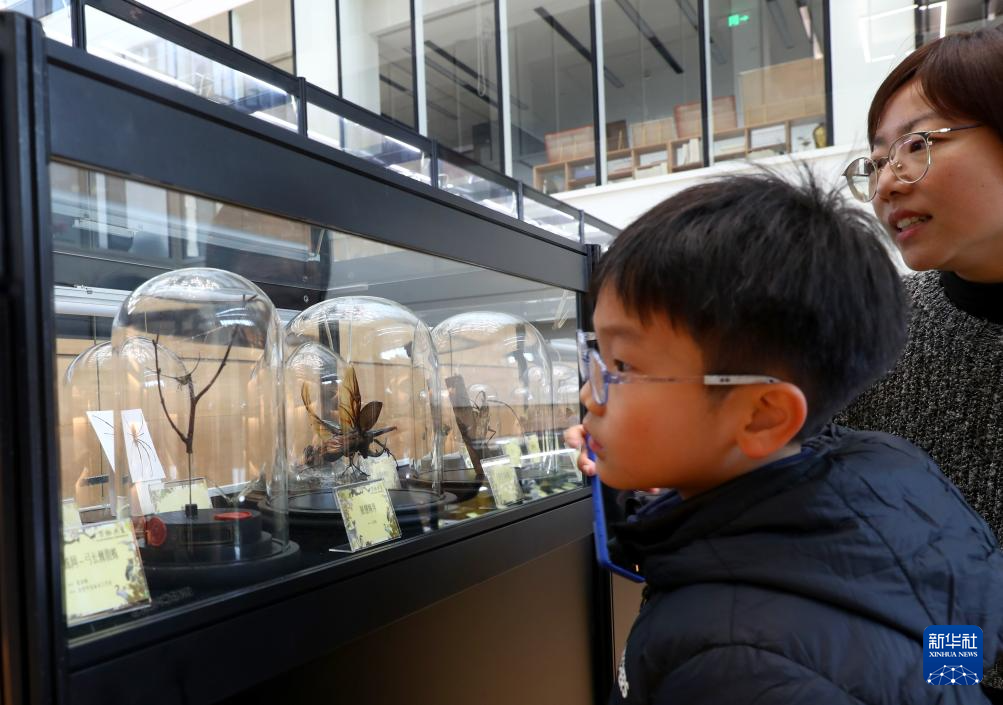 12月20日,参观者在昆虫标本展柜前驻足观看。