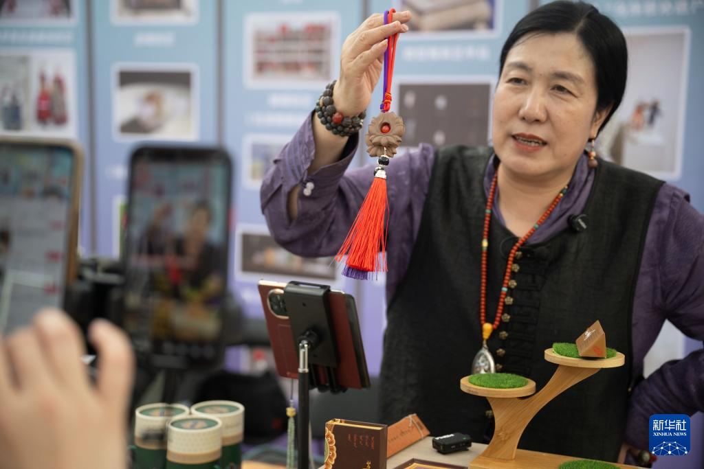 12月20日,一名手工艺人直播展示香薰工艺品。