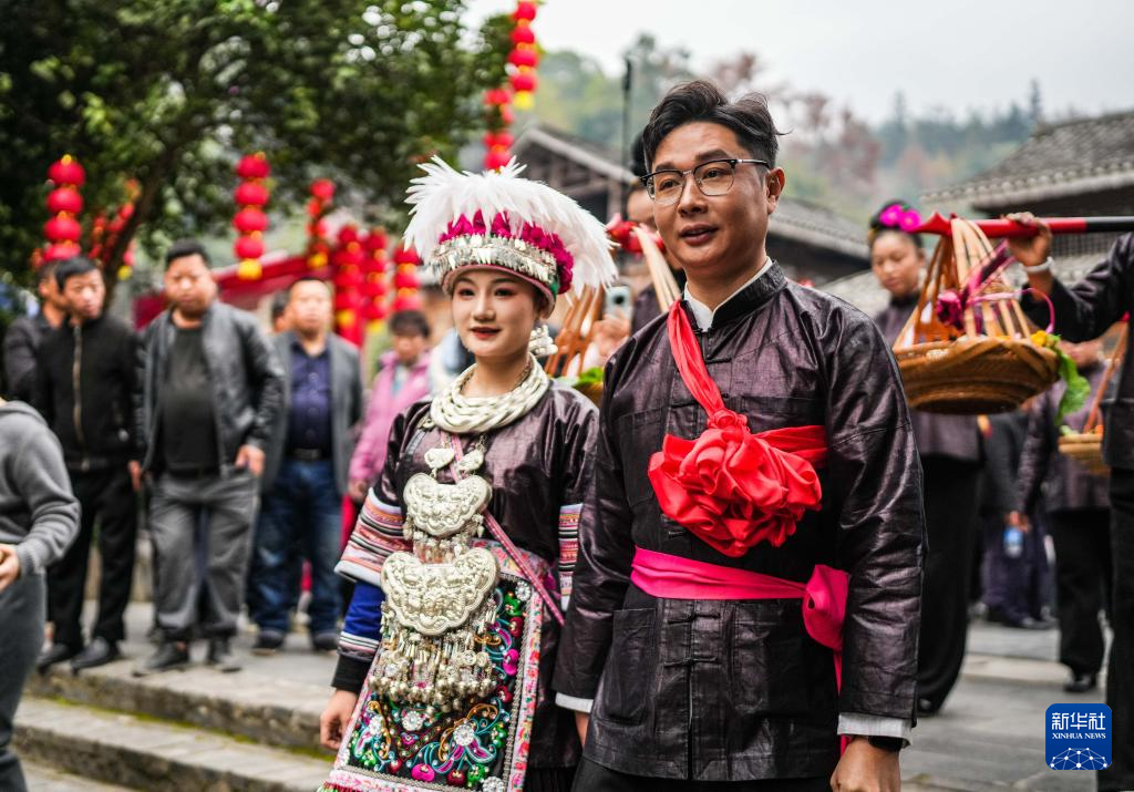 12月20日,肇兴侗寨的展演队伍在行进中。