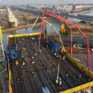 12月19日起,位于浙江省嘉兴市南湖区的新建南通至宁波高速铁路(简称通甬高铁)嘉兴特大桥跨杭申线航道矮塔斜拉桥连续梁0号块持续进行浇筑施工,将为后续桥梁上部结构推进奠定基础。