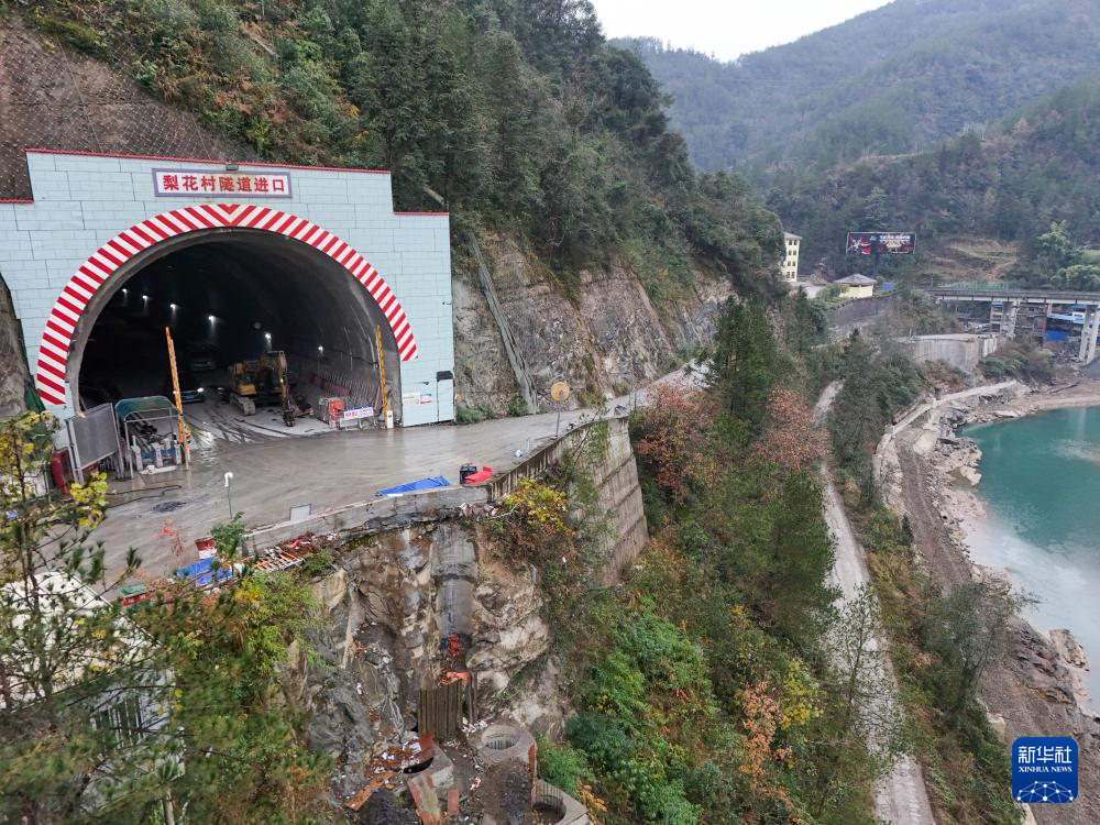 12月20日拍摄的西渝高铁梨花村隧道进口(无人机照片)。