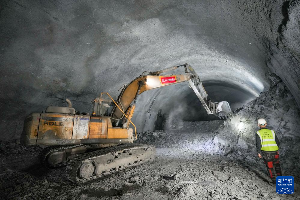 12月20日,工程机械设备在西渝高铁梨花村隧道内施工作业。