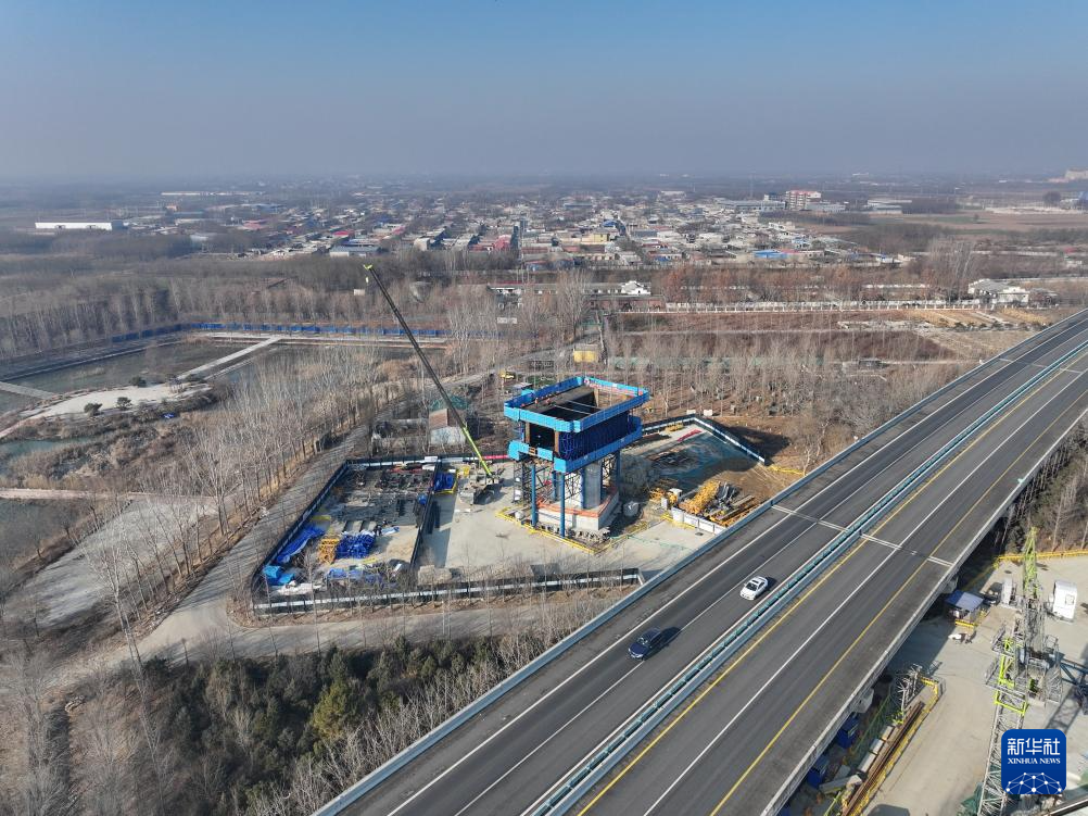 12月23日,中铁十一局工人在石雄铁路跨津石高速连续梁拱主墩建设现场架设钢筋。