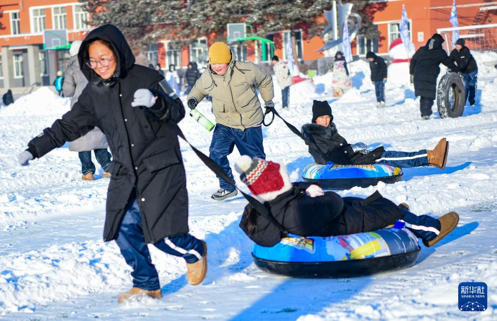 12月24日,呼伦贝尔额尔古纳市第二中学师生体验拉雪圈。