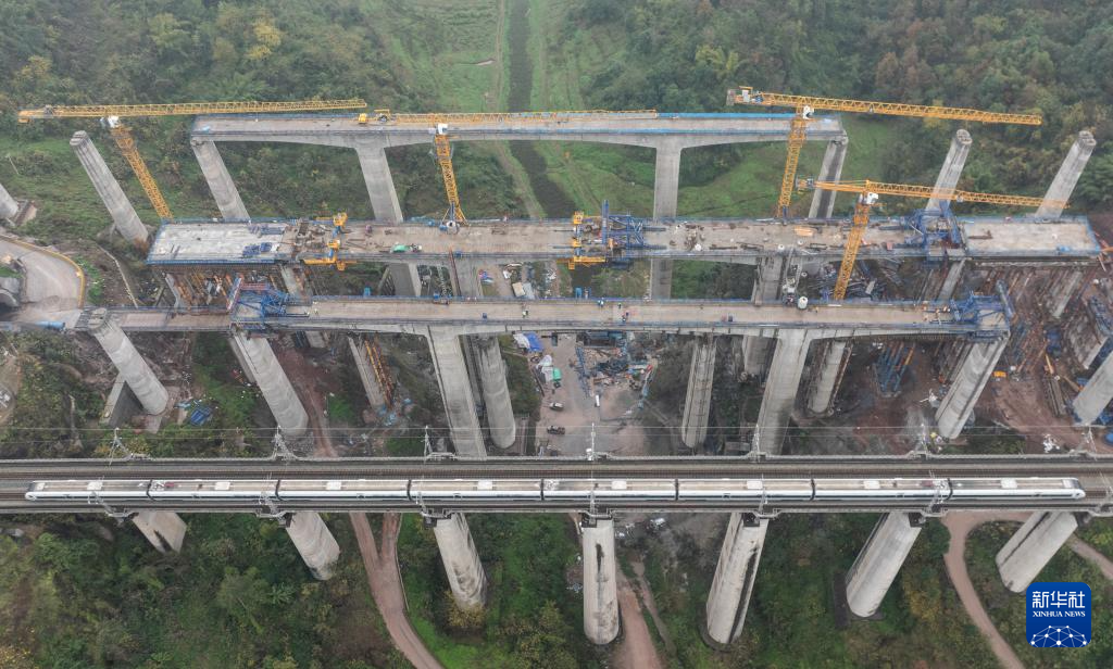 渝万高铁打青沟左线大桥连续梁顺利合龙-新华网