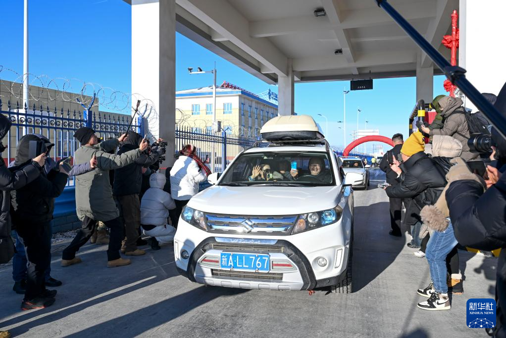 12月26日,车辆通过位于乌鲁木齐县的永丰收费站驶入乌尉高速公路,吸引媒体工作人员关注。