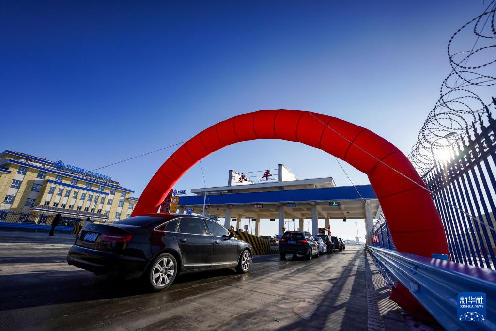 12月26日,在乌尉高速公路的永丰收费站附近,人们驾车排队等待通行。