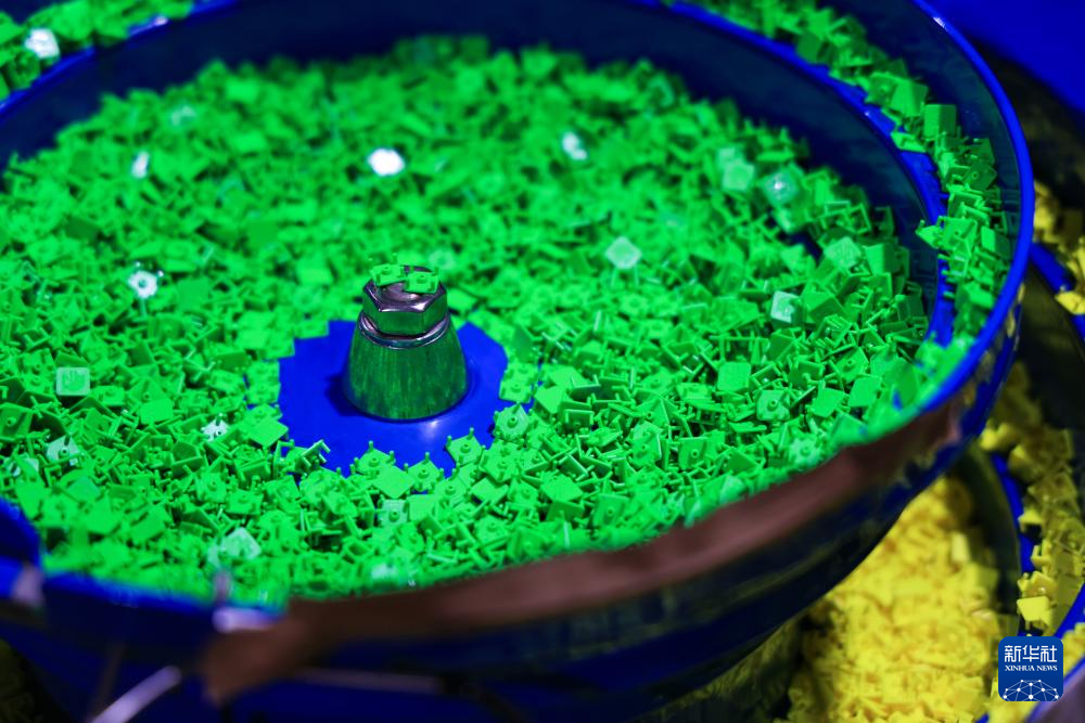 10月29日在广东佛山顺德淦源科技的智能制造基地拍摄的等待组装的魔方组件。