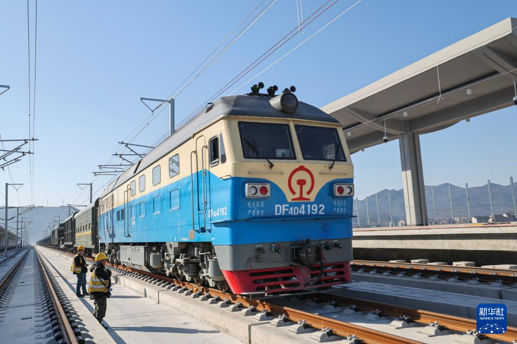 12月28日,中铁十四局工作人员对刚刚铺轨完成的正线轨道进行巡查。