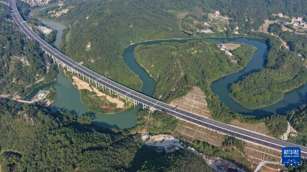 这是12月28日在广东阳春市拍摄的阳信高速永宁互通(无人机照片)。