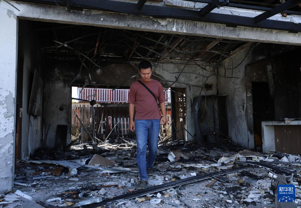 这是12月29日在泰国沙缴府临近柬埔寨的边境地区拍摄的在冲突中受损的房屋。