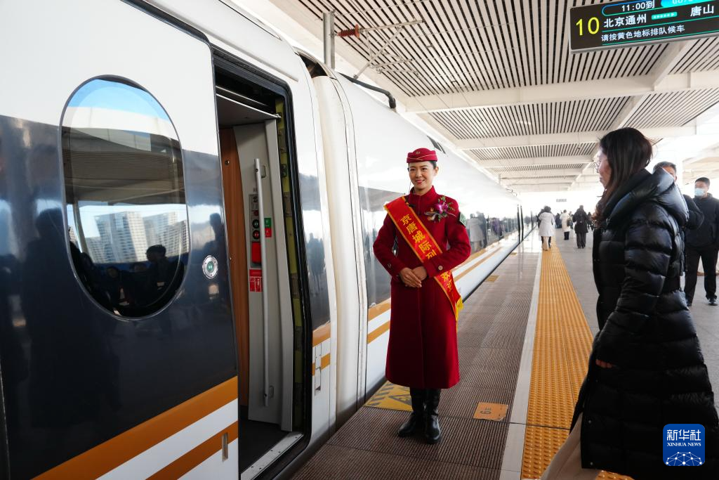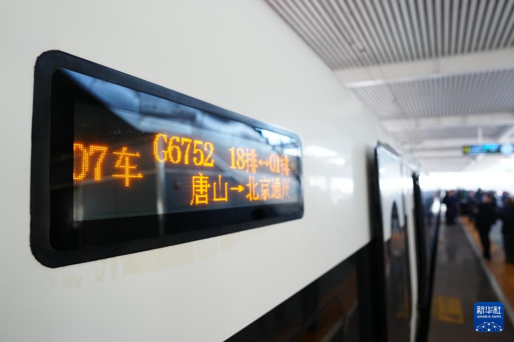 12月30日,北京通州开往唐山的首发列车缓缓驶入唐山站。