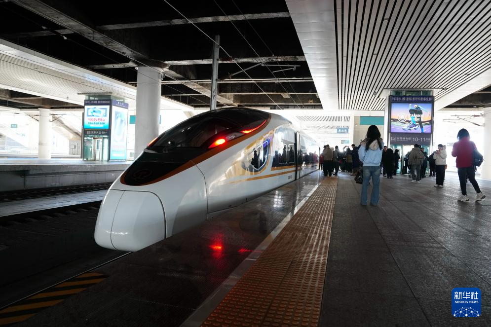 12月30日,从唐山开往北京通州的首发列车停靠在唐山站站台。