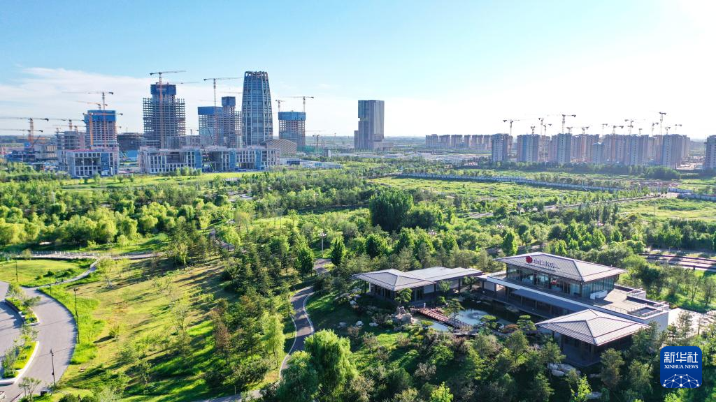 雄安新区启动区内树木葱郁(2025年8月9日摄,无人机照片)。雄安新区启动区规划面积38平方公里,是先行开发、率先见效的关键区域。启动区承担着首批北京非首都功能疏解项目落地、高端创新资源集聚和引领高质量发展的重要任务。