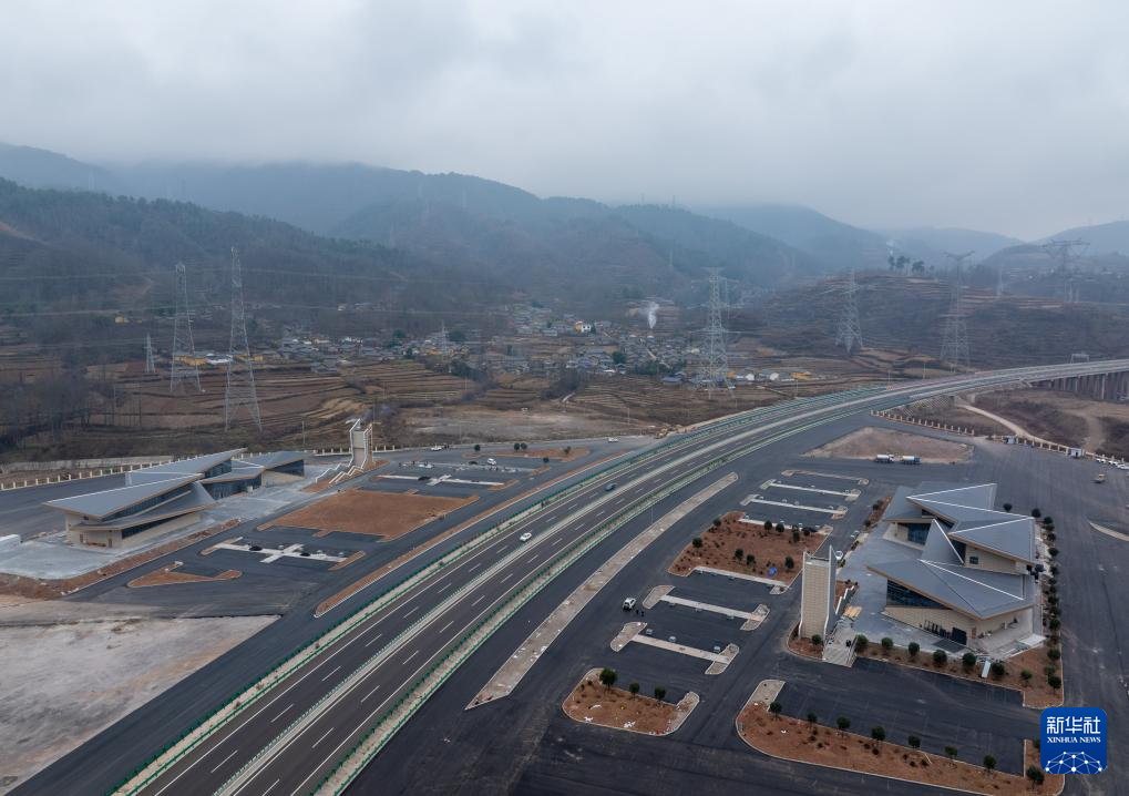 12月26日拍摄的乐西高速大风顶枢纽和大风顶服务区(无人机照片)。