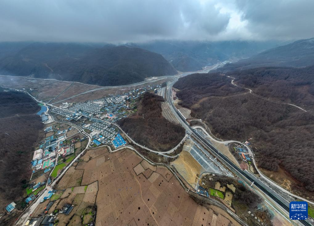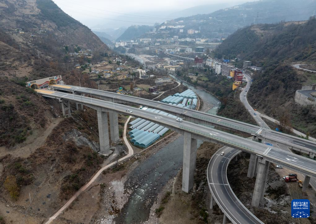 12月27日拍摄的乐西高速美姑县城段(无人机照片)。