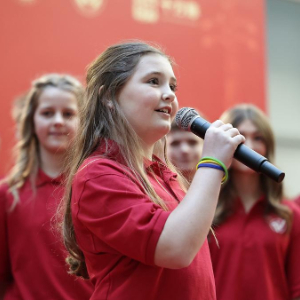 12月31日,美国One Voice儿童合唱团在北京协和医院门诊楼主街上演唱。