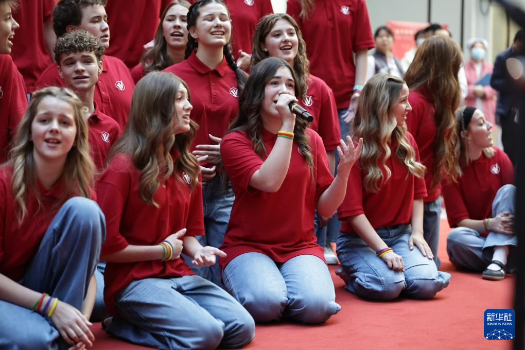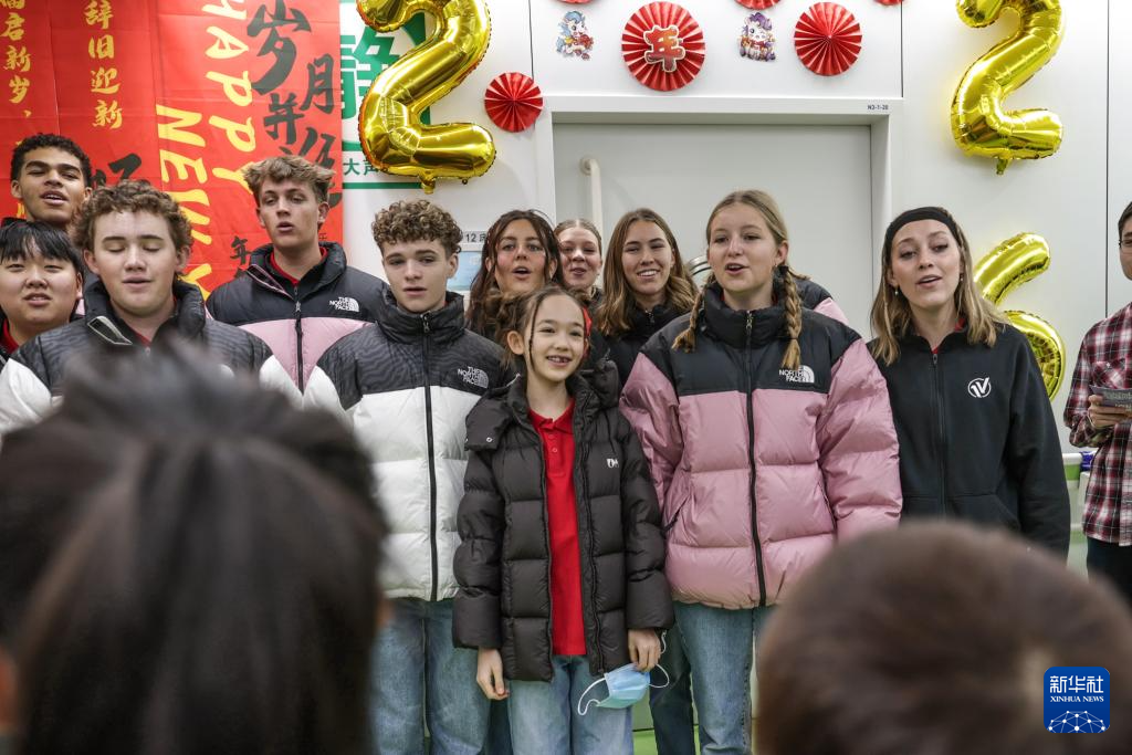 12月31日,美国One Voice儿童合唱团成员在北京协和医院的儿科病房内演唱。