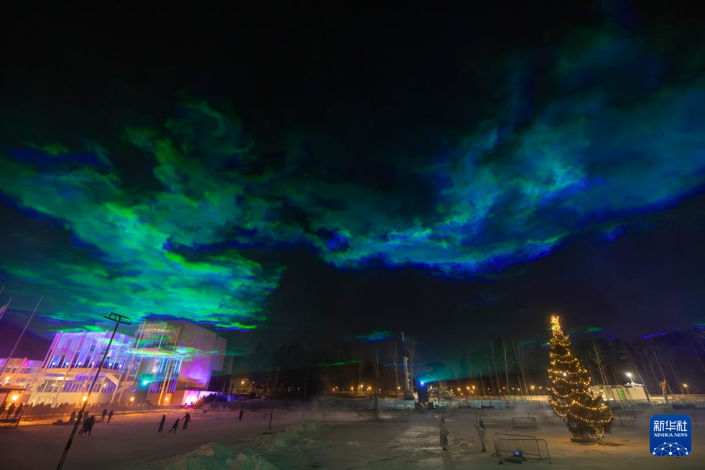 芬兰埃斯波:“北极光”下迎新年-新华网