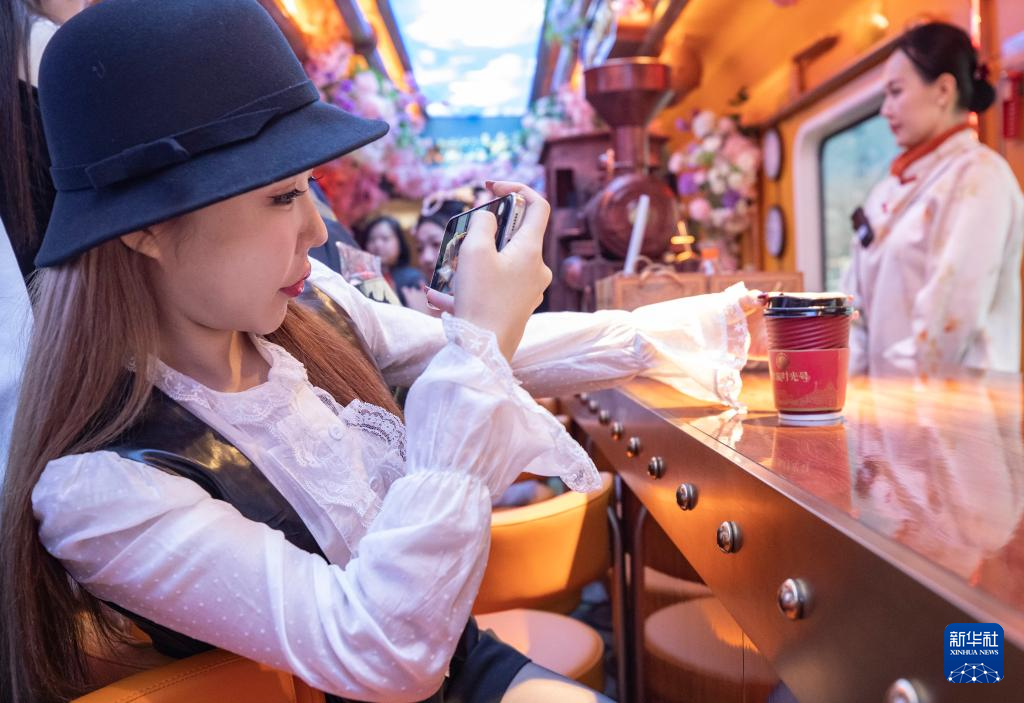 2026年1月1日,旅客在列车上沉浸式体验京津文化特色。