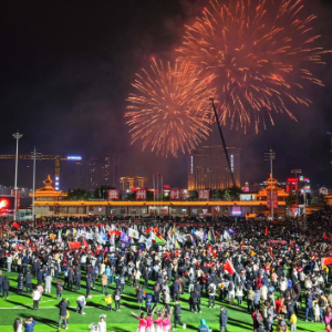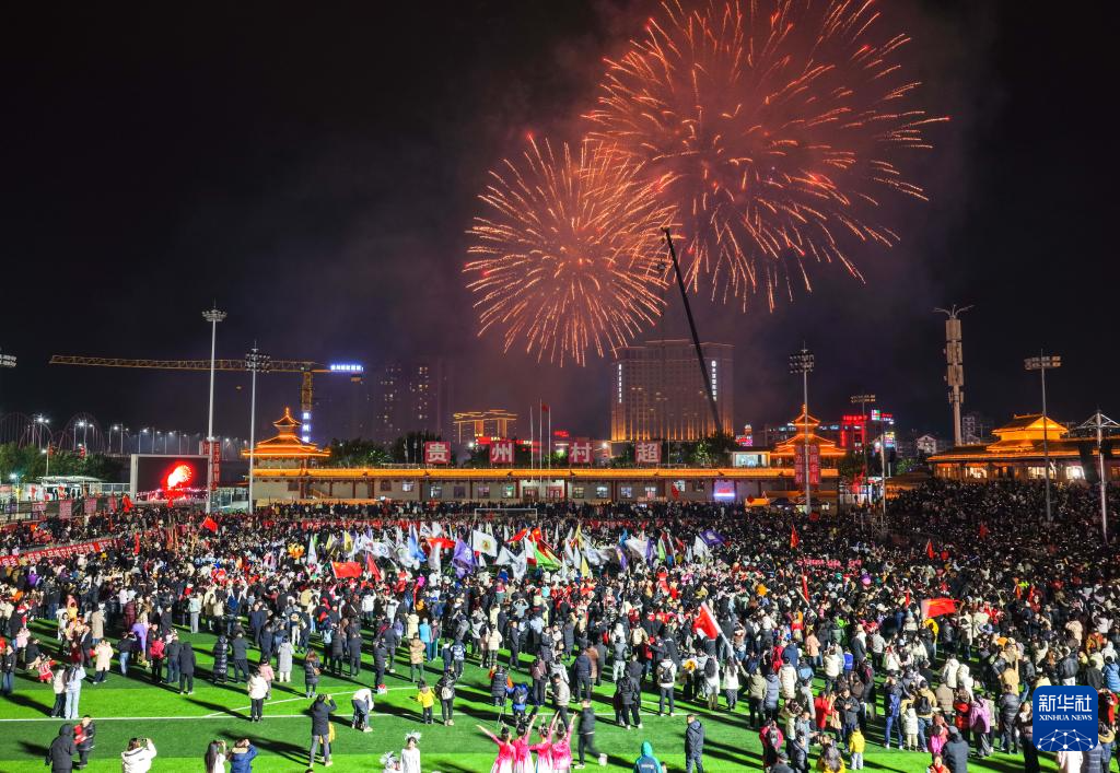 1月2日,人们在活动现场观看烟花表演(无人机照片)。