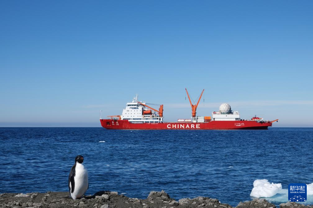北京时间2025年12月29日,执行中国第42次南极考察任务的“雪龙”号极地科考破冰船顺利抵达秦岭站海域,并开展卸货作业。
