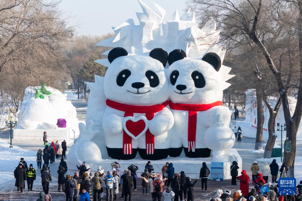 2025年12月27日,第38届太阳岛国际雪雕艺术博览会试开园(无人机照片)。