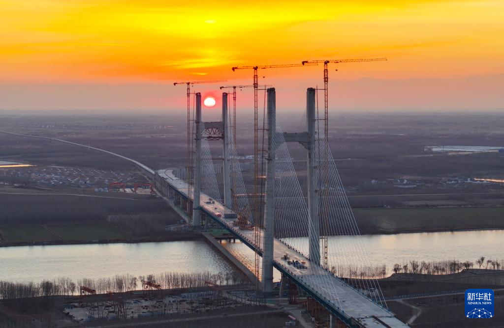 2025年12月31日,津潍高铁东营黄河公铁大桥顺利合龙(无人机照片)。