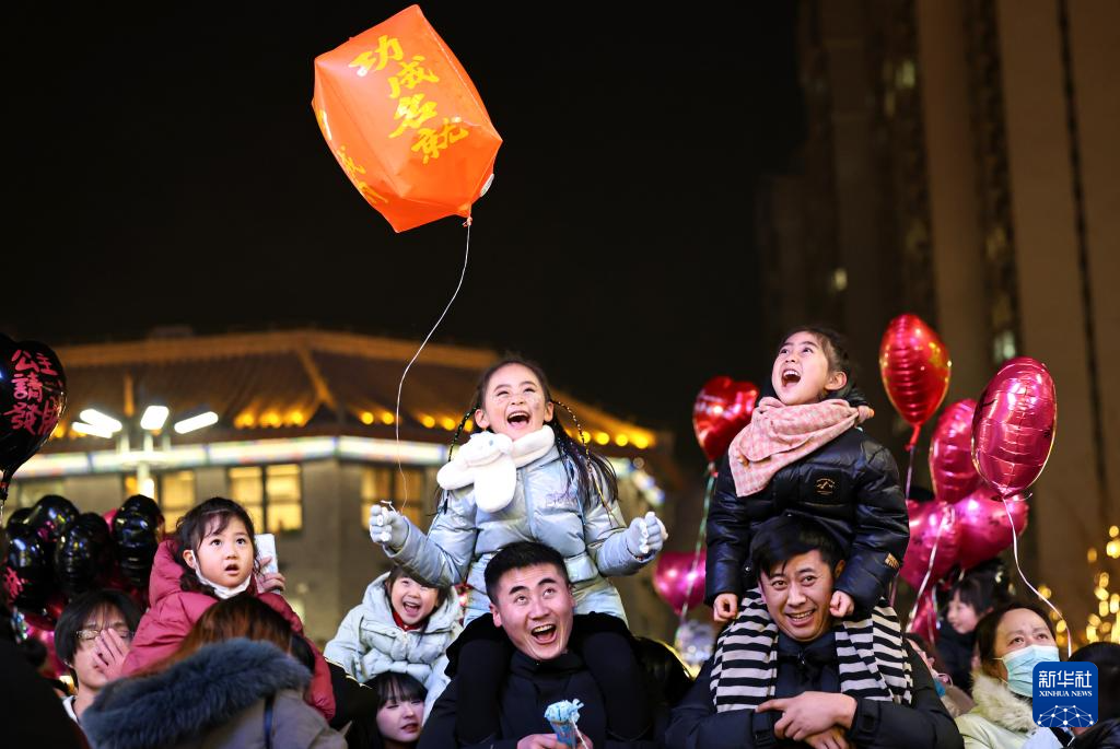 2025年12月31日晚,人们在甘肃省兰州市七里河区老街参加跨年活动。