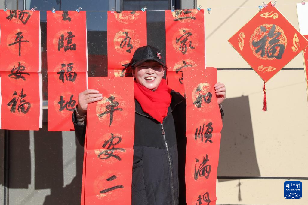 元旦前夕,甘肃省兰州市榆中县山洪灾害灾后重建集中搬迁入住活动在各安置点同步举行。这是2025年12月29日,村民在榆中县马坡乡马莲滩村灾后重建集中搬迁入住活动现场领取春联。
