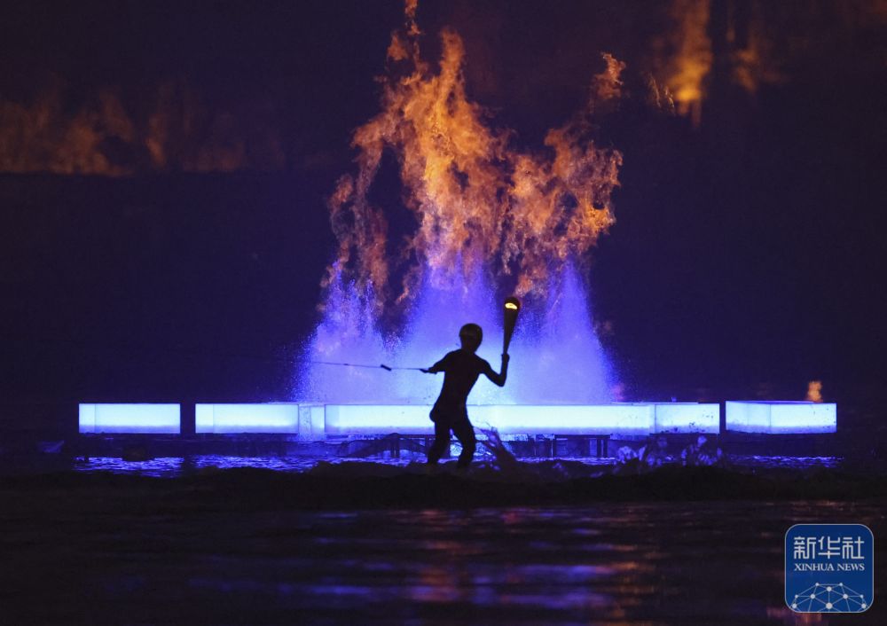 2025年8月7日,主火炬在开幕式现场被点燃。当日,第12届世界运动会开幕式在成都举行。新华社记者 陈斌 摄