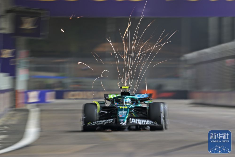 2025年10月3日,阿斯顿·马丁车队西班牙车手阿隆索在练习赛中。当日,2025赛季世界一级方程式赛车锦标赛(F1)新加坡大奖赛第二场练习赛举行。新华社发(邓智炜摄)