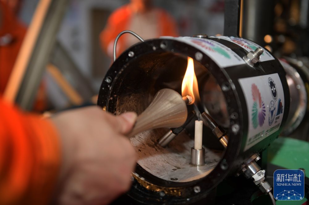 2025年9月18日,在科考船甲板面,工作人员从搭载在“海马”号深海遥控潜水器上的采火装置里取火。10月9日,第十五届全国运动会、全国第十二届残疾人运动会暨第九届特殊奥林匹克运动会火种采集仪式在广州举行。全运圣火“源火”来自南海1500多米深海底,通过引燃可燃冰的方式获取。9月18日,在南海北部海域,我国自主研发的“海马”号深海遥控潜水器(ROV)搭载“可燃冰原位采集分解及引燃装置”下潜到1500多米深海底,科研人员远程操控采集可燃冰,并降压使其分解,产生的甲烷气体即为“源火”气源。随后,科考船甲板面的太阳能光伏装置发电并传输到海底,引燃气源获取“源火”。“海马”号携带燃烧的“源火”返回科考船甲板面后,科研人员将“源火”转移至“源火”盒,“源火”采集成功。新华社记者 卢汉欣 摄