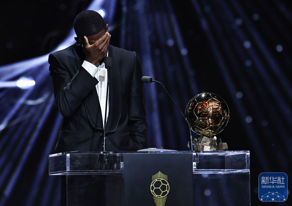 2025年9月22日,巴黎圣日耳曼队法国球员登贝莱在颁奖仪式上。他获颁男足金球奖。当日,由《法国足球》杂志举办的2025年金球奖颁奖典礼在巴黎夏特莱剧院举行。新华社记者 高静 摄