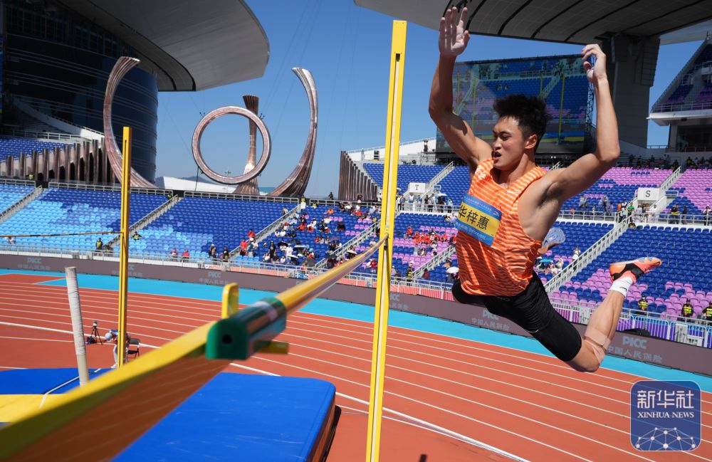 2025年11月16日,浙江队选手华梓惠在比赛中。当日,第十五届全国运动会田径男子十项全能撑杆跳高比赛在广州举行。新华社记者 王楷焱 摄