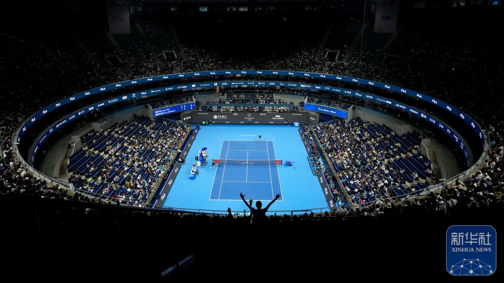 这是2025年9月30日拍摄的比赛现场。当日,在北京举行的2025中国网球公开赛男单半决赛中,俄罗斯选手梅德韦杰夫对阵美国选手勒纳·钱。最终,梅德韦杰夫因伤退赛,勒纳·钱晋级决赛。新华社记者 那宇奇 摄