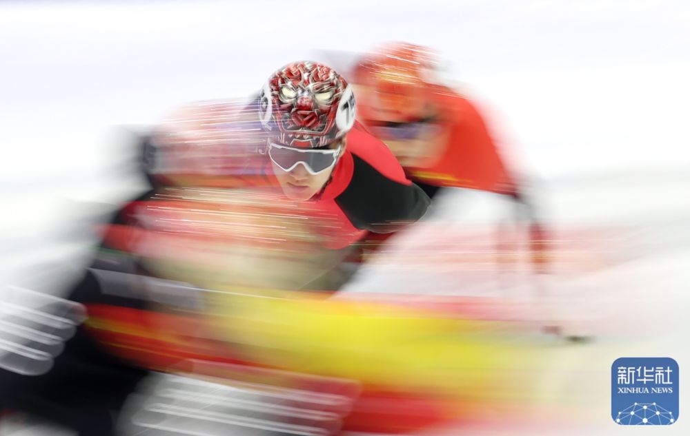 2025年9月6日,黑龙江省冰上训练中心选手沈俊博在男子1000米四分之一决赛中。当日,中国短道速滑国家集训队队内选拔赛第二阶段比赛在北京首体滑冰馆完赛。新华社记者 雒圆 摄