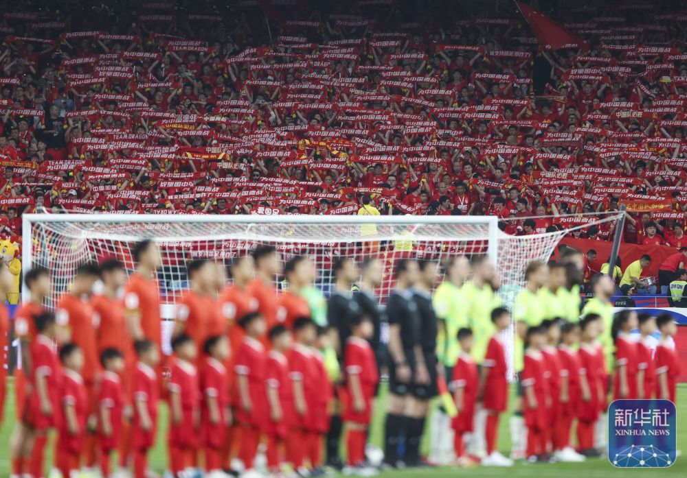 2025年3月25日,中国队球迷在赛前为球队加油助威。当日,在浙江杭州举行的2026美加墨世界杯亚洲区预选赛18强赛C组第八轮比赛中,中国队主场0比2不敌澳大利亚队。新华社记者 曹灿 摄