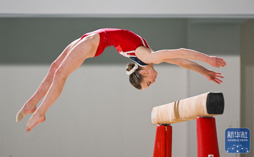 2025年3月23日,美国选手克莱尔·皮斯在比赛中。当日,在土耳其安塔利亚举行的2025年国际体联体操世界杯安塔利亚站女子平衡木决赛中,美国选手克莱尔·皮斯获得冠军。新华社记者 刘磊 摄