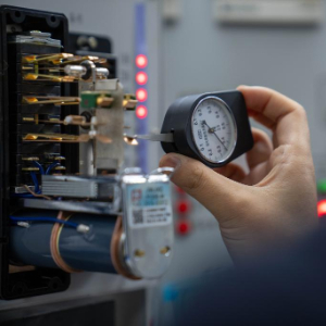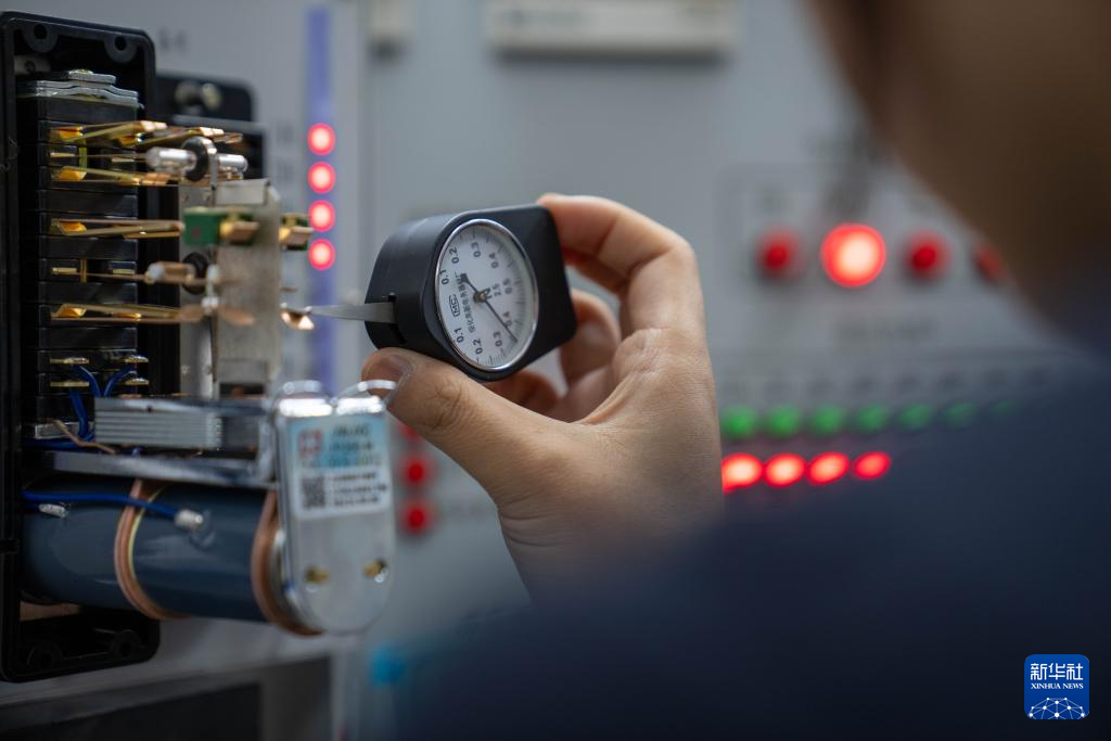 1月6日,拉萨基础设施段电务专修车间继电器检修工区的信号工丁增央金在测试继电器节点压力。