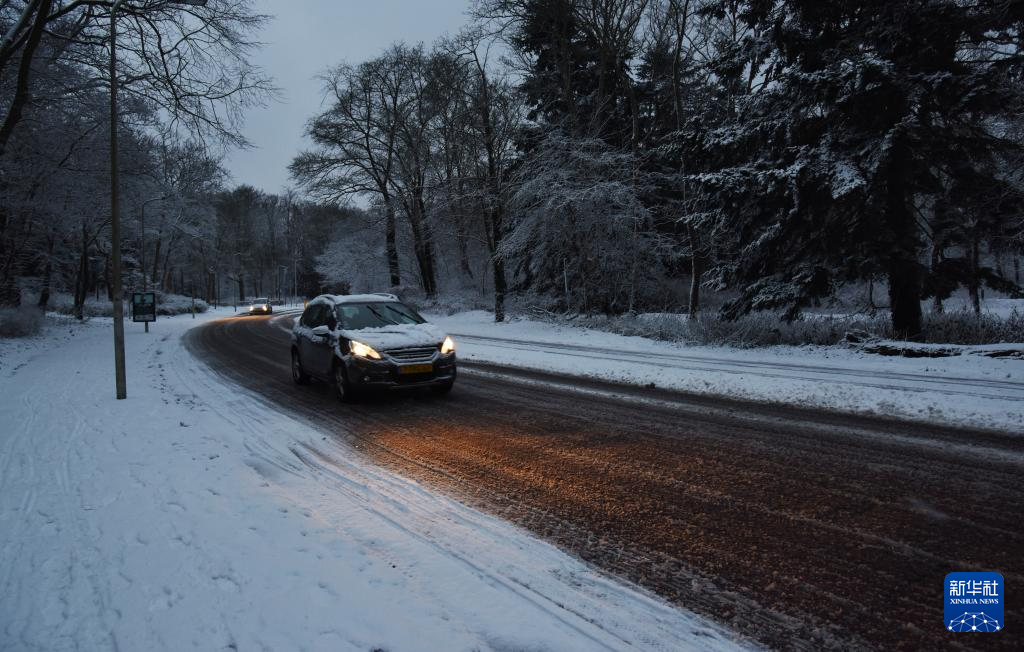 1月7日,在荷兰海牙,一辆汽车在道路上行驶。