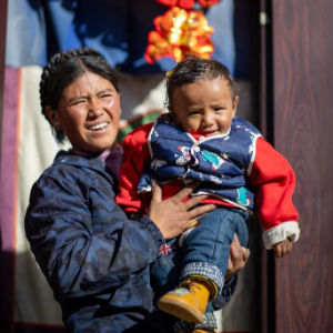 1月5日,在西藏定日县长所乡杂村,母亲朋琼在家中抱着次仁拉巴。