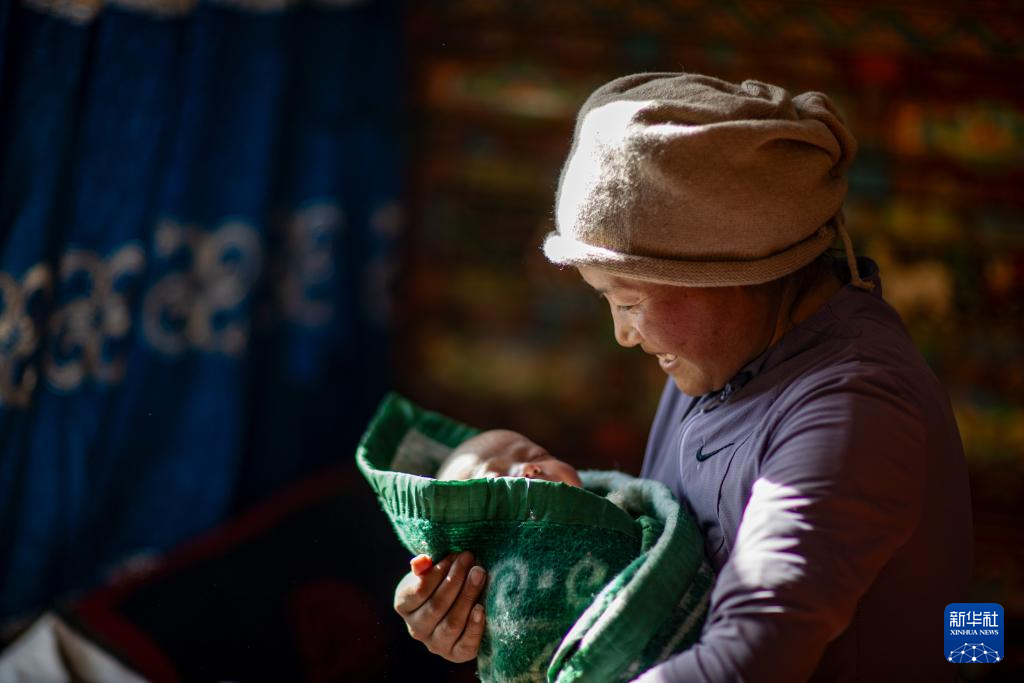 2025年1月8日,次仁拉姆抱着自己刚满月的孩子格桑巴宗。
