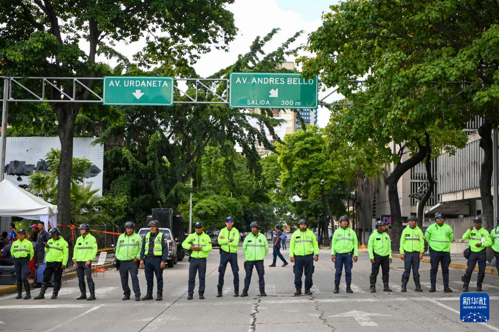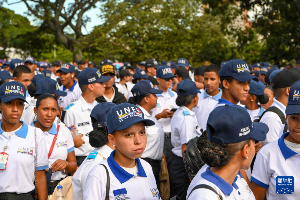 1月8日,在委内瑞拉首都加拉加斯,国民警卫队在青年大游行期间维持秩序。