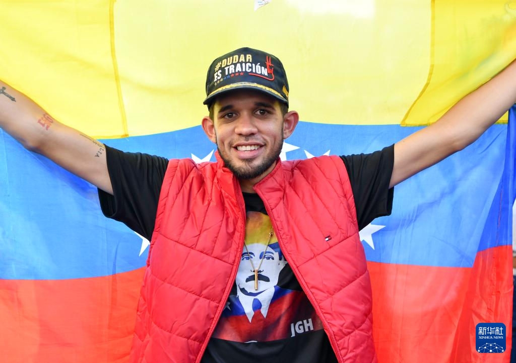 1月8日,一名男子在委内瑞拉首都加拉加斯参加青年大游行。